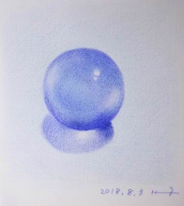 2018年8月4日(土) 暑中お見舞い申し上げます 毎日異常な暑さが続いております。 体調にお気をつけください。 ということでちょっとだけ涼しげな絵。 前に飲んだラムネの瓶から取り出したビー玉。 机の引き出しに仕舞っておいたもの。 昔は石をぶつけてガラスの瓶を割って取り出したけれども、 今はプラスチック容器で、頭を捻れば簡単に栓が外れて、 ビー玉が取り出せるようになっています。これは楽です。 それにしても正確に丸を描くのはとても難しい。 一息に正確に丸い線が引けたら、きっとどんなものでもしっかりデッサンできるのではないでしょうか。 私はデッサンに自信がなく、何本も線を引かなければなりません。それでやっとこんな感じ。 |