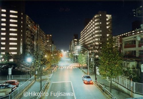 2019年11月23日(土) 写真 撮影場所:高島平撮影年:1995年 24年も前のフィルム撮影時代のものを引っ張り出してきました。 寒い冬の夜、広角レンズを付けた一眼レフカメラと三脚を持って撮影に行ったことを思い出します。 集合住宅の立ち並ぶ夜景にゾクゾクワクワクしたものです。 これはその中でもお気に入りの1枚。 歩道橋の上から、クルマの光跡がいい感じに撮れました。 |