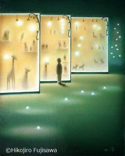 2019年12月8日(日) 新作 ![]() サイス: F3号 アクリル画 タイトル: プロムナード 制作メモ: 夜の遊歩道。 ディスプレイされたぬいぐるみ。 おさんぽワンちゃんを連れた子。 イヌのぬいぐるみと見つめ合う。 |