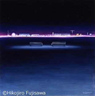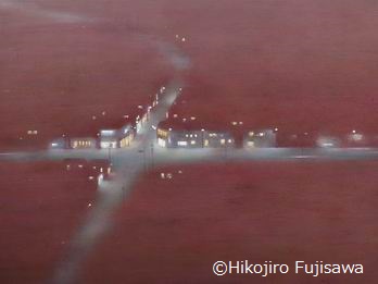 2022年2月27日(日) 振り返り中 第18回 ![]() 「光茫」 制作年1995年 130号 クルマの光跡だけが写った道路の写真を見たとき、光跡以外何も写っていない夜の街に、自分の絵のテーマだった「都市の喧騒と人間性不在の静寂」を感じ、しばらく光跡をモチーフに作品にして行くことにしました。 この絵は当時出品していた団体展で賞を貰って会員に選ばれ、念願だった安井賞展にも入選し、更にこれも夢だった本の表紙に採用され、私に幾つものご褒美をもたらしてくれました。 光跡を表現するのに使っていた絵具のブラッシングの技法は瞬発的な緊張感が必要で、じっくり描くタイプだった自分には背伸びをした表現でした。 そのせいでしょうか、一方で本当の静寂の世界を、ある日突然描きたくなりました。 |