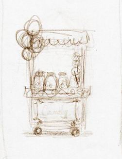 2022年6月5日(日) 「脱力」スケッチ 3 ![]() 目覚まし時計のちょっと変わり種です。 石をモチーフにしたデザインで、背中にリング状のスタンドが付いています。 壁に引っ掛けることもできます。 見た目はしっかりプラスチッキーですが、気に入って使っていました。 動かなくなって捨ててしまいましたが、ヘタでもこうして絵にしておくと、いつでも記憶の底から甦って手触りまでも思い出せるから、絵って面白いなーといつも思うのです。 |