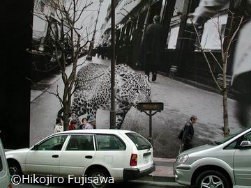 2023年7月23日(日) 趣味で撮っていた写真 その17 ![]() 撮影年: 2003年 撮影場所: 中央区銀座 解説: これも銀座です。 ちょっとわかりずらいですが、ヒョウが写っているモノクロ写真が、建設現場のフェンスにプリントされています。 よく見ると、ヒョウが街中を歩いている写真です。 フェンスの前の歩道には人が歩いています。 ちょっとトリッキーです。 |