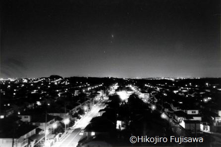 2023年10月15日(日) 趣味で撮っていた写真 その26 撮影年: 1981年 撮影場所: 八王子市鑓水 解説: かなり昔の写真です。 大学の版画の授業で、シルクスクリーンの写真製版が課題に出ました。 それで夜景をモチーフにしようと思い立ち、家から歩いて20分ぐらいの所にある、住宅街を見下ろす丘陵の端に三脚を立てて撮影したものです。 この立っている場所のすぐ裏手に朽ち果てたお堂があって、そこで以前事件があって怖い噂の場所だったので、一人で街灯もない所を懐中電灯を頼りに、結構肝試しっぽく撮影したことを思い出します。 |