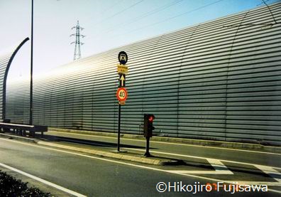 2023年10月22 撮影年: 1997年 撮影場所: 埼玉県和光市 解説: しばらく東京郊外の写真が続きます。 ここは東京外環自動車道です。 防音フェンスが延々続いています。 この頃の私は、こういった郊外の殺風景な人工物に美を感じていて、好んで絵の題材にしていました。 この写真は、アメリカの写真家ピート・ターナーの雰囲気がちょっと感じられて気に入っています。 |
