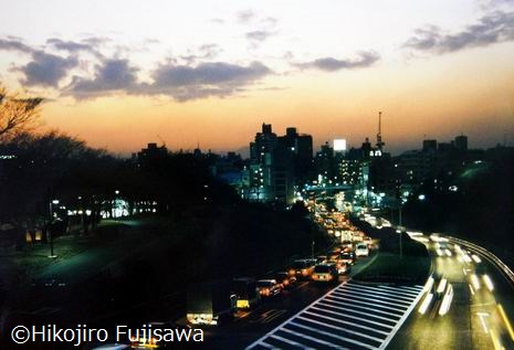 2023年11月19日(日) 趣味で撮っていた写真 その30 撮影年: 1993年 撮影場所: 代々木公園 解説: 夕暮れの町です。 代々木公園の歩道橋の上から富ヶ谷交差点方面を見ています。 右半分のクルマの流れの動と、左半分の街灯の静の対比が気に入っています。 |