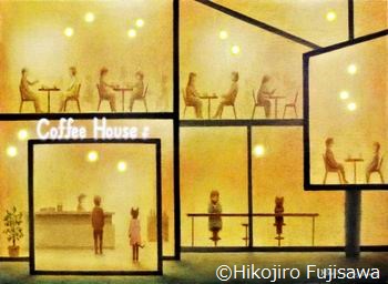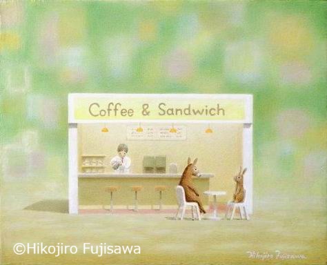 2024年2月25日(日) 新作2 ![]() 「人気のカフェ」 4号 キャンバスにアクリル絵具 夕暮れのカフェです。 土曜日でしょうか。混んでいます。 先に注文をして会計を済ますタイプです。 男の人がカウンターで注文をしています。(自分のような気がします。) ちょっと間を空けて後ろにワンピースを着た女性(ネコです。)が順番を待っています。 ちょっと建物としては現実にはありえないですが、平面構成で絵を描きたかったのです。 |
