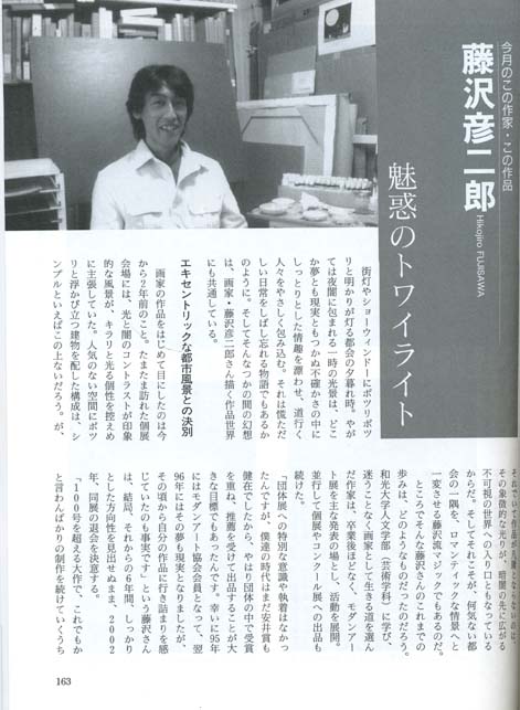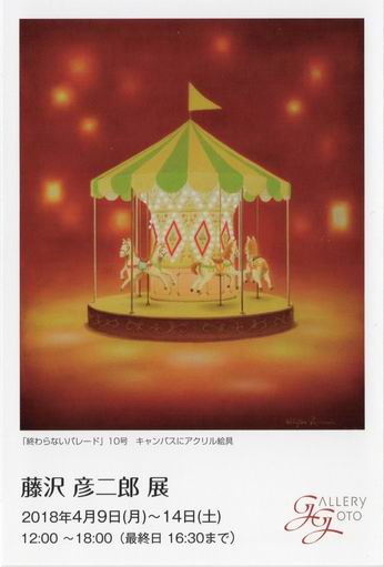 ★2020年 個展のご案内 (終了いたしました。) ![]() 藤沢 彦二郎 展 ―都会のおとぎ話― 会期: 10月26日(月)〜31日(土) 時間: 12:00〜18:00 (最終日は16:30まで) 場所: ギャラリーゴトウ 東京都中央区銀座1-7-5 銀座中央通りビル7F 都会の街を舞台に、童心に返った夢見心地の世界を透明アクリル絵具の柔らかいグラデーションで描き出します。 ご高覧いただけましたら幸いです。 |