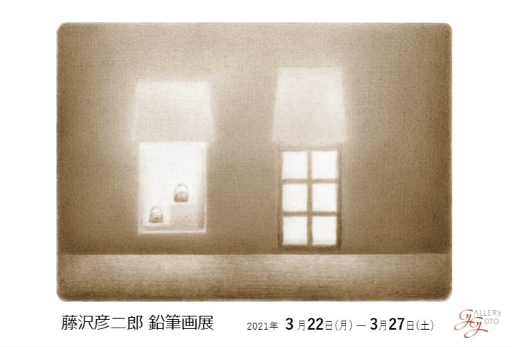 ★2021年 個展のご案内 (終了いたしました。) ![]() 藤沢 彦二郎 鉛筆画展 会期: 3月22日(月)〜27日(土) 時間: 12:00〜18:00 (最終日は16:30まで) 場所: ギャラリーゴトウ セカンドルーム 東京都中央区銀座1-7-5 銀座中央通りビル7F 温もりのあるセピア色の小さな世界。 ハガキ大の鉛筆画十数点を展示いたします。 |
