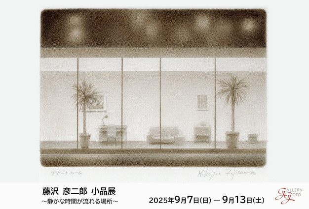 ★2025年 個展のご案内 (終了いたしました。) ![]() 鉛筆画とドローイングによる 藤沢 彦二郎 小品展 〜静かな時間が流れる場所〜 会期: 9月7日(日)〜13日(土) 時間: 12:00〜18:00 (最終日は16:30まで) 場所: ギャラリーゴトウ 東京都中央区銀座1-7-5 銀座中央通りビル7F ハガキ大の鉛筆画10点と、色鉛筆によるドローイング8点を展示いたします。 皆様のお越しをお待ちしております。 ご高覧頂けますよう、よろしくお願い申し上げます。 |
